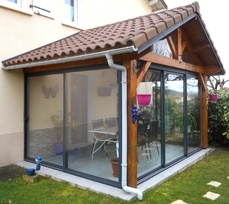 Fermeture de terrasse par 3 coulissants ALU coloris Gris Ardoise (RAL 7016) double vitrage fabriqué par Castes Industries à Villefranche de Rouergue