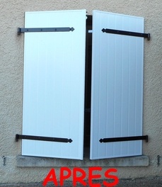 Volets battants en aluminium plein isolé - barres + écharpes - pentures en aluminium noir festonné
